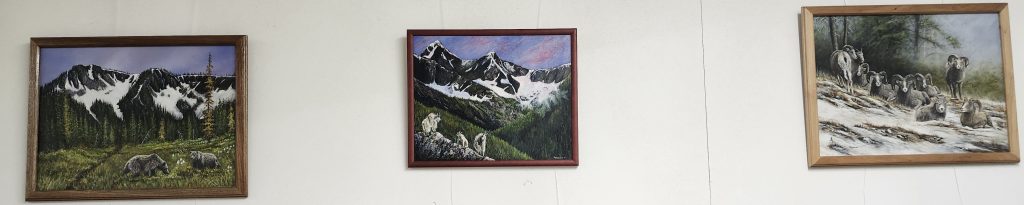 We have successfully launched our “Art on the Walls” project. The Nelson Seniors Centre is now displaying local, Kootenay-based artists in our bright and spacious activity Centre. It’s a great opportunity for the artists to share their work, gain exposure as an artist, and contribute to a meaningful and inspiring experience for our members. It’s a colourful and vibrant improvement to our Centre for our members to enjoy as you attend your favourite activities.